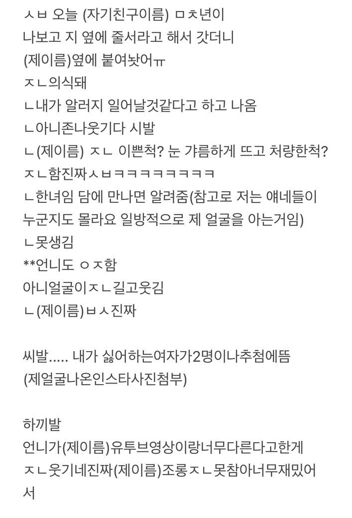사진에 나온 수위정도로 상대가 비공개 계정에 글을 남겼고