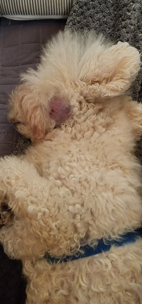 산책할때 뭐에 물린거같아 연고,미스트 바르고 잠깐 두고보다가 점점커지고 여러군데 퍼져서 동네병원방문.