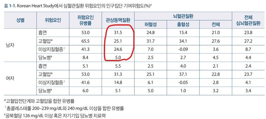 이상지질혈증 진료지침에 나와있는 표입니다.