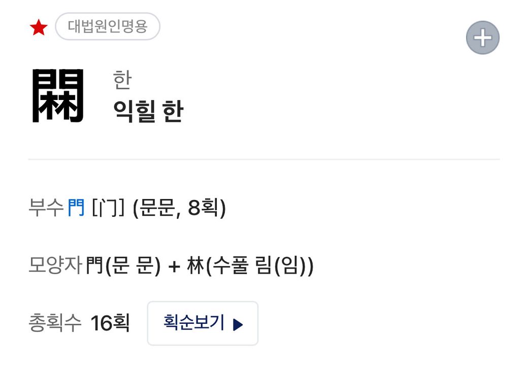 아들 이름에 “익히다 한”자를 쓰려고 하는데요. 찾아보니까 인명용 한자는 맞는데, 이름으로 자주 쓰이는 한자는 아닌 것 같더라구요. “익히다 한”자를 이름으로 쓰더라도 크게 문제될 건 없겠죠. 사주오행이나 뜻풀이상 너무 좋아서 꼭 쓰고 싶어서요.