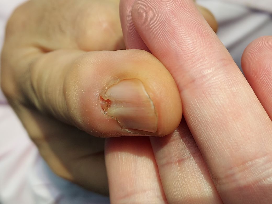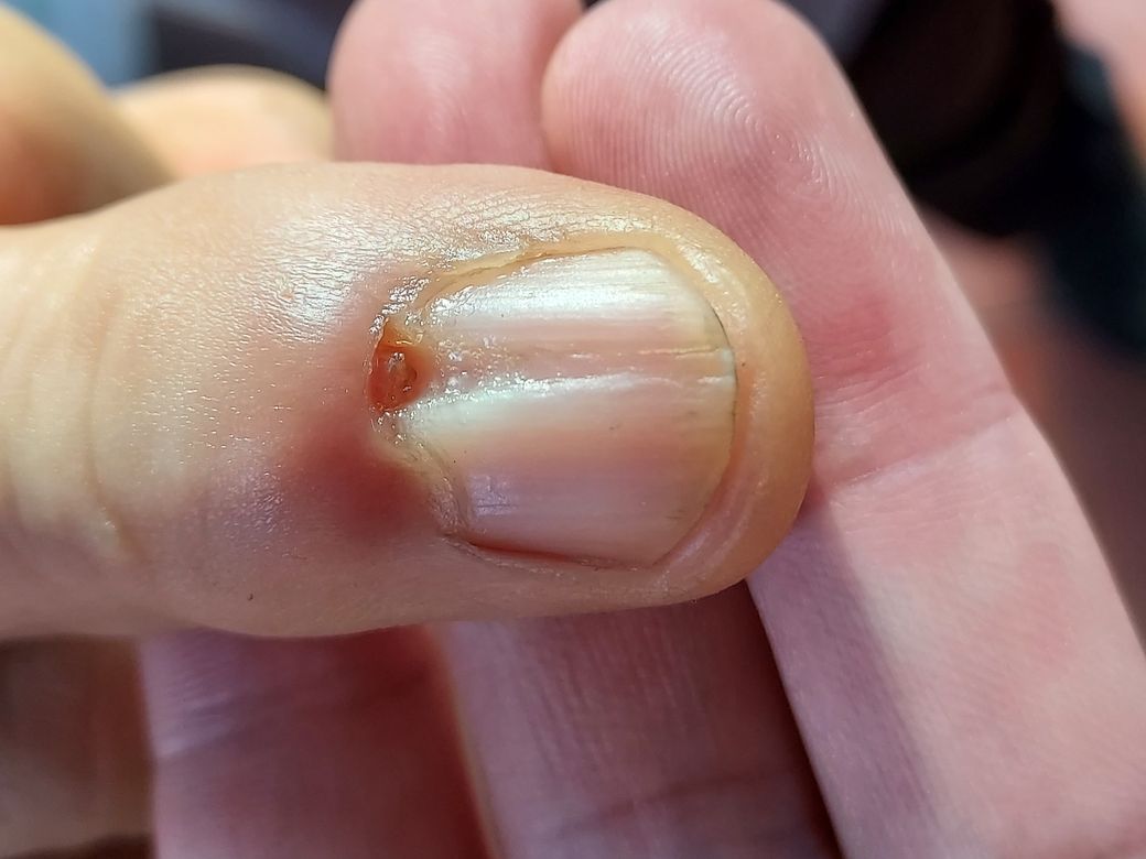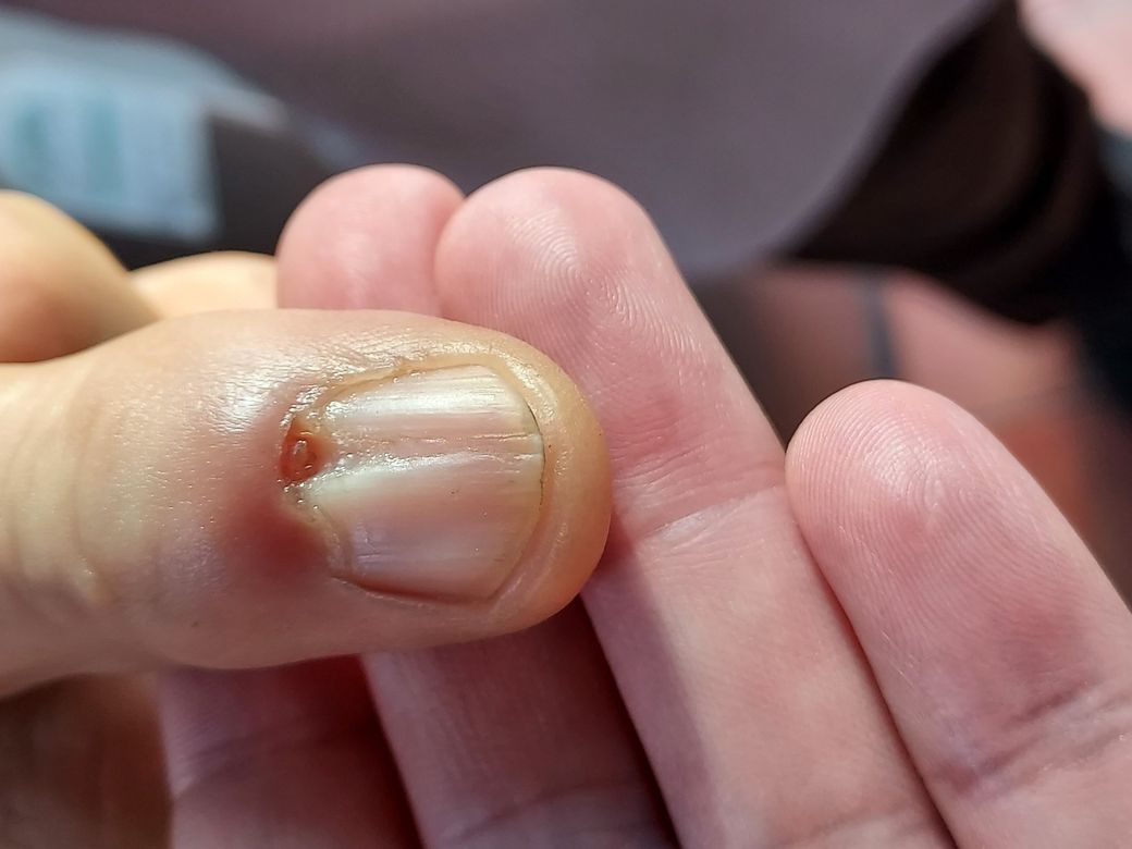 손톱이 갈라지고 염증이 있습니다.