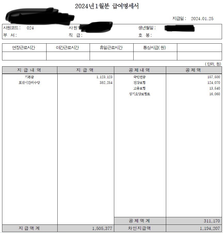 3. 그리고 1월은 20일까지의 임금이 지급되어야 하므로 2,333,333 x 20 / 31로 계산하여 1,505,376원으로