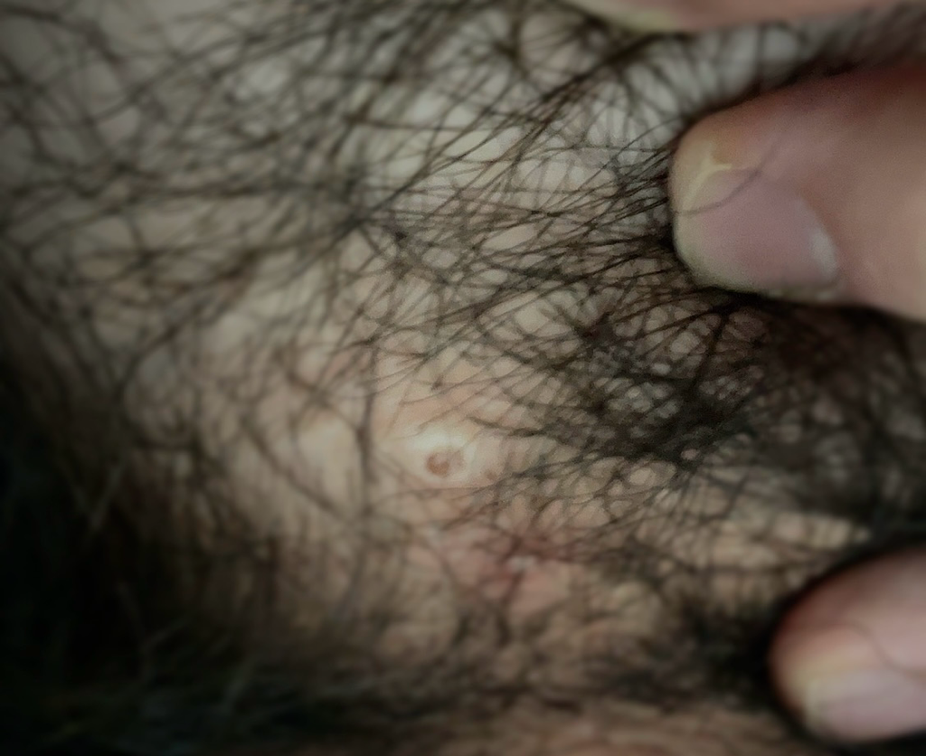 성기 위 털 자라는 부분에 원인모를 테두리가 하얀 반점이 하나 생겼습니다.