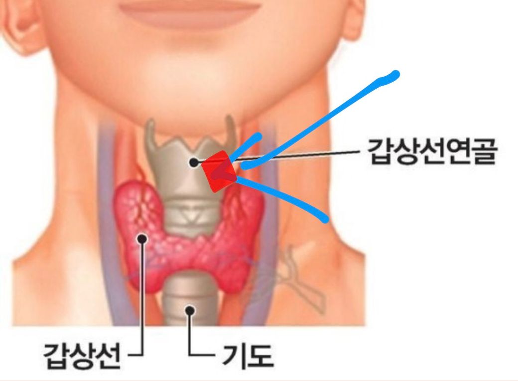 갑상선 연골? 목젖 오른쪽 옆에 누르면 아파요