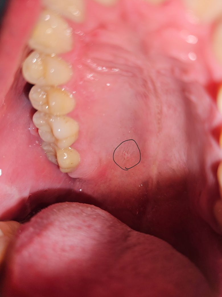 언제부터 생겼는지는 잘 모르겠는데, 전에도 비슷하게 있었던 것 같습니다. 최근에 또 우연히 혀로 만지다가 발견했습니다. 통증은 전혀 없고 불편함도 없는데 신경쓰이네요.