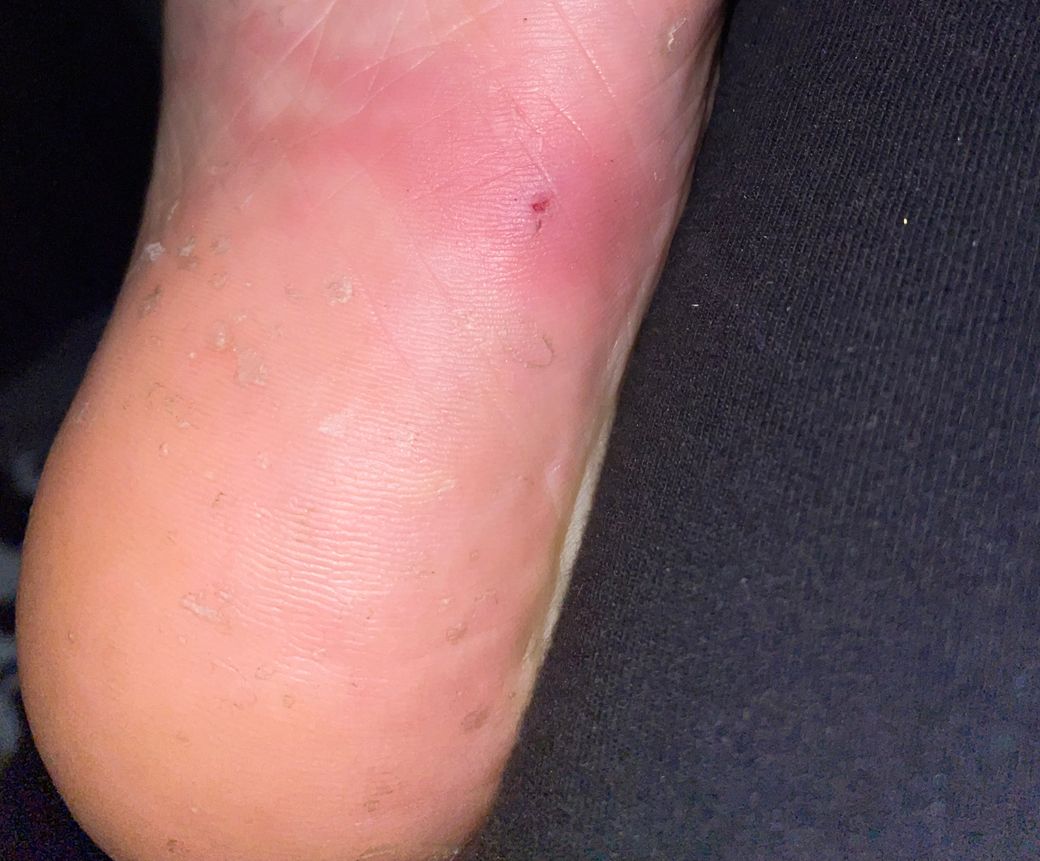사진의 소견을 통해서 보았을 때에는 원인은 모르겠으나 발바닥의 발적, 붓기, 통증 등 증상이 있어 연부조직의 염증이 발생한 것으로 보입니다. 항생제 및 소염진통제 복용이 필요해 보이며 환부에 대해서 소독 및 드레싱 또한 필요해 보입니다. 정형외과 등 병원에 방문하이서 치료 및 처방을 받으시길 권고드립니다.