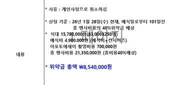 결혼식 취소 위약금 관련질문입니다.