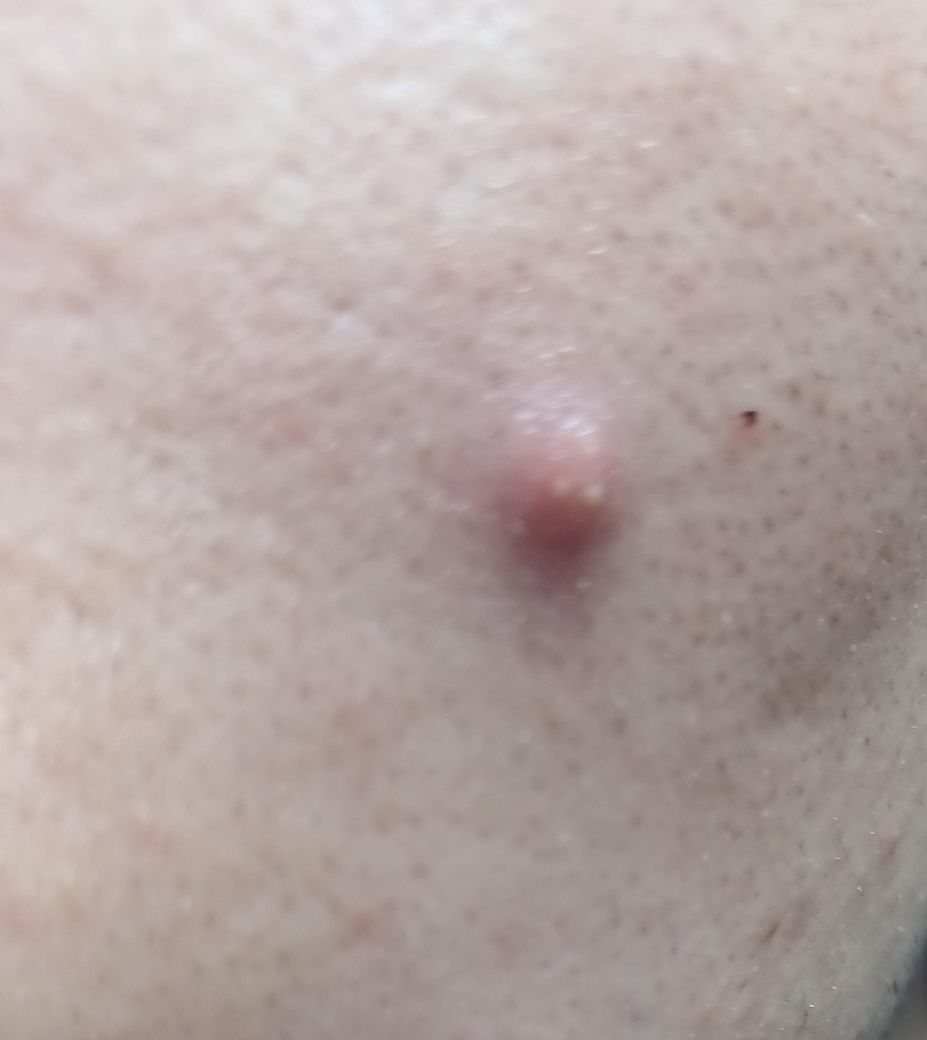사진을 통해서 보았을 때에는 여드름이 상당히 익은 상태로 보이며 깔끔하게 압출을 하고 여드름 패치를 붙이는 등 조치를 취해주는 것이 적절할 것으로 사료됩니다. 혼자서 시도하신다면 위생적으로 무균적으로 제대로 압출을 할 수 있도록 노력하시길 바랍니다. 여의치 않다면 그냥 피부과에 방문하시어 시술을 받으시는 것도 괜찮은 생각이겠습니다.