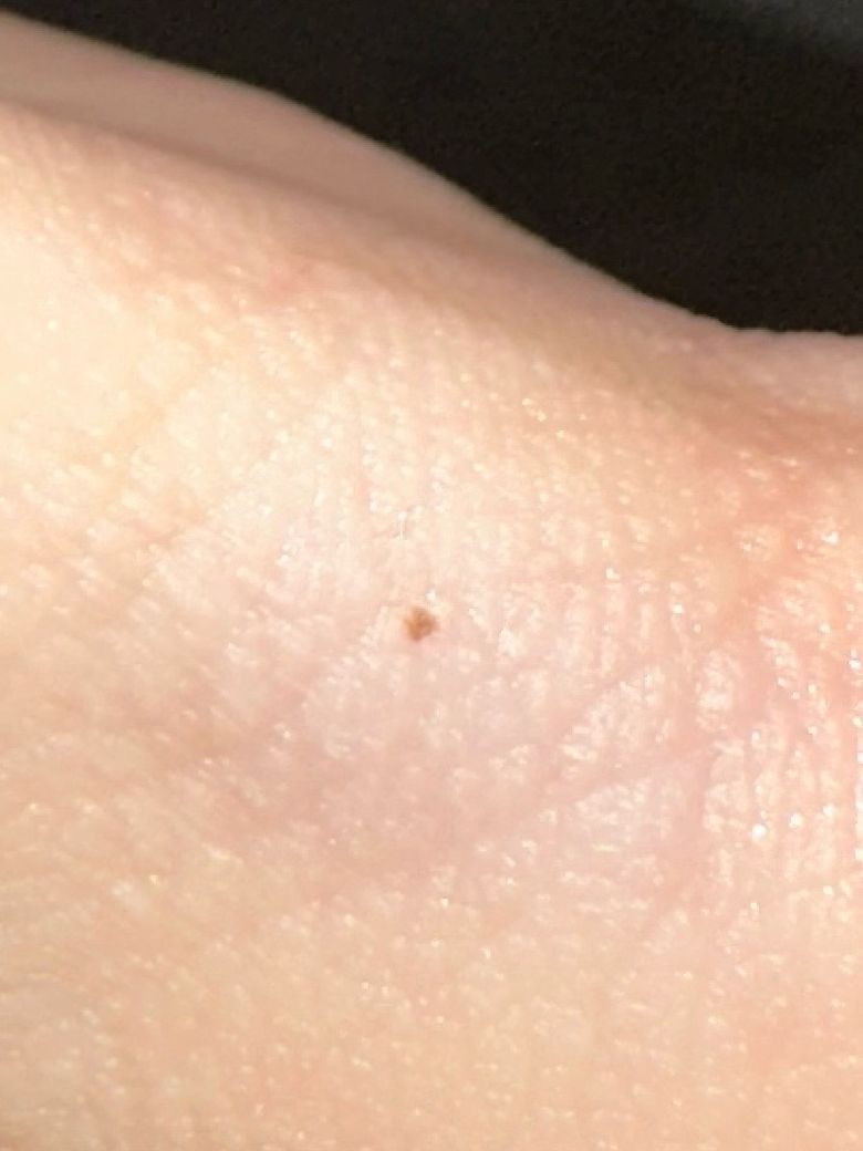 한 한 달? 쯤 전에 갑자기 조그만한 점이 보이더라구요.. 엄지와 검지 사이에 있고 정말 작았는데 살짝 커진 것 같아 불안해요 ㅠㅠ 크기는 현재는 0.15mm 정도 되는 것 같아요. ABCDE 중에 AB에 해당되는 것 같아 불안하네요.. 그냥 보면 동그랗게 보이긴 하지만 확대하니 이러네요. 피부암