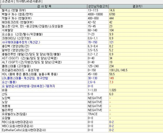 헤모글로빈은 14.6으로 빈혈은 없습니다