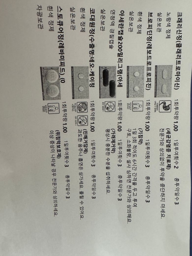 처방받은 병원 약은 아래의 이미지와 같습니다!