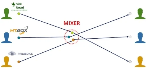 암호화폐 믹싱이라는 것은 한 중개사가 여러 트랜스액션의 암호화폐를 모았다가, 이들을 다시 내보낼대 섞어서 정확히 어떤 금액이 어디로 흘러가는지를 알 수 없도록 하는 기술및 서비스입니다.