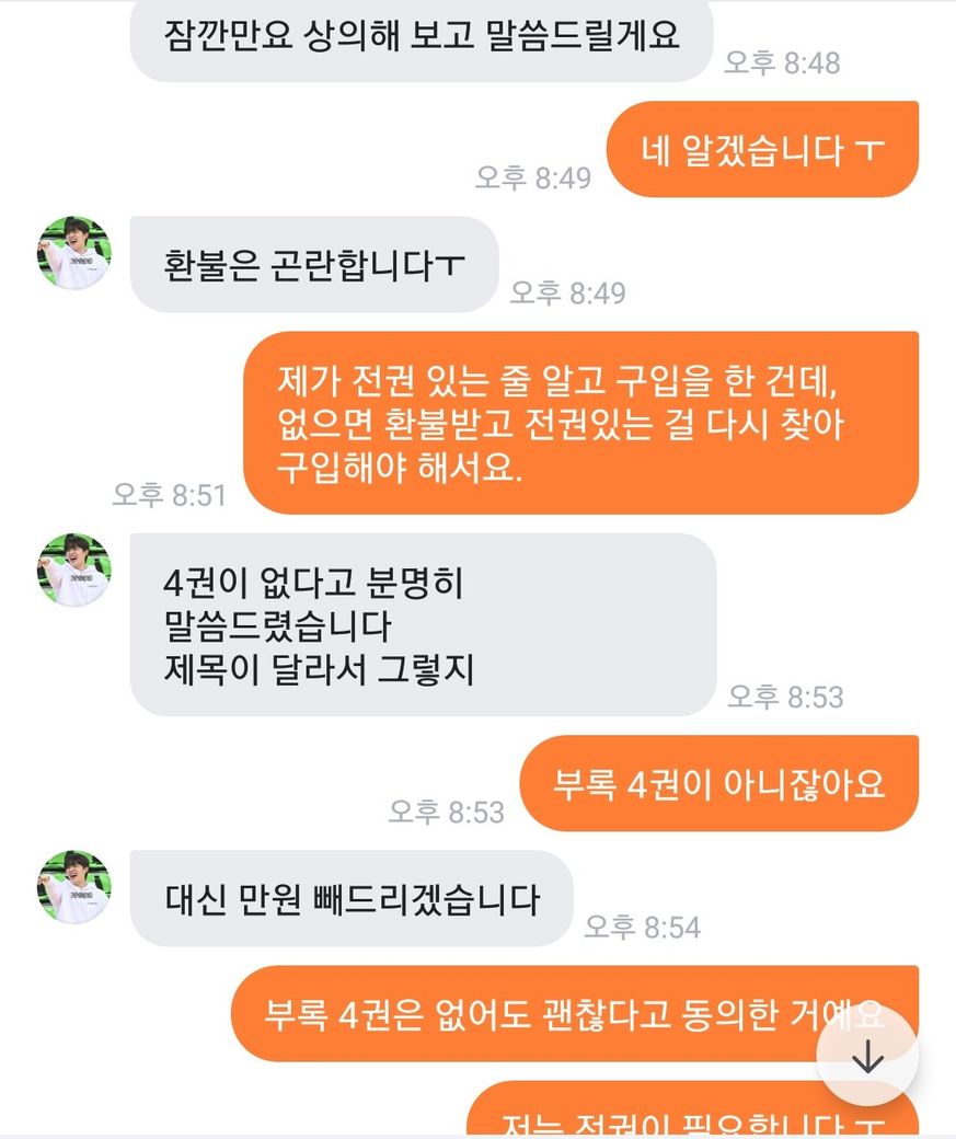 그리고 저는 그 낱권은 제가 따로 구입할 수 있는 것이 아니기에 환불을 요구했습니다.