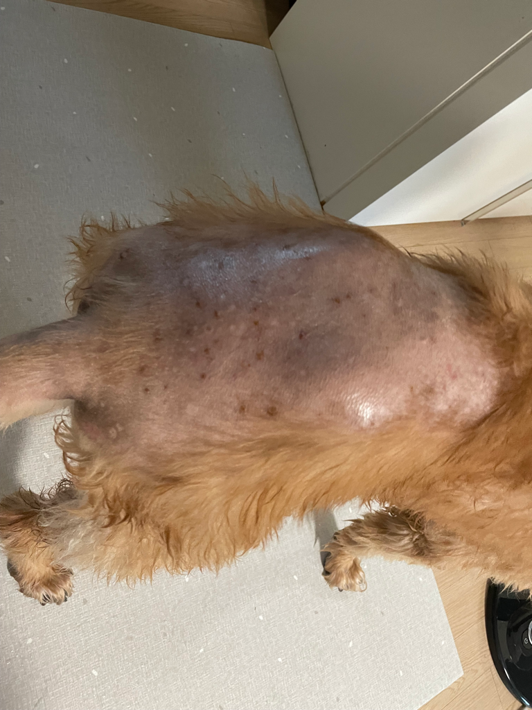 물론 둔부의 탈모등은 벼룩알러지나 기타 다른 면역계 질환과 연관이 있어 정밀검사가 필요합니다.