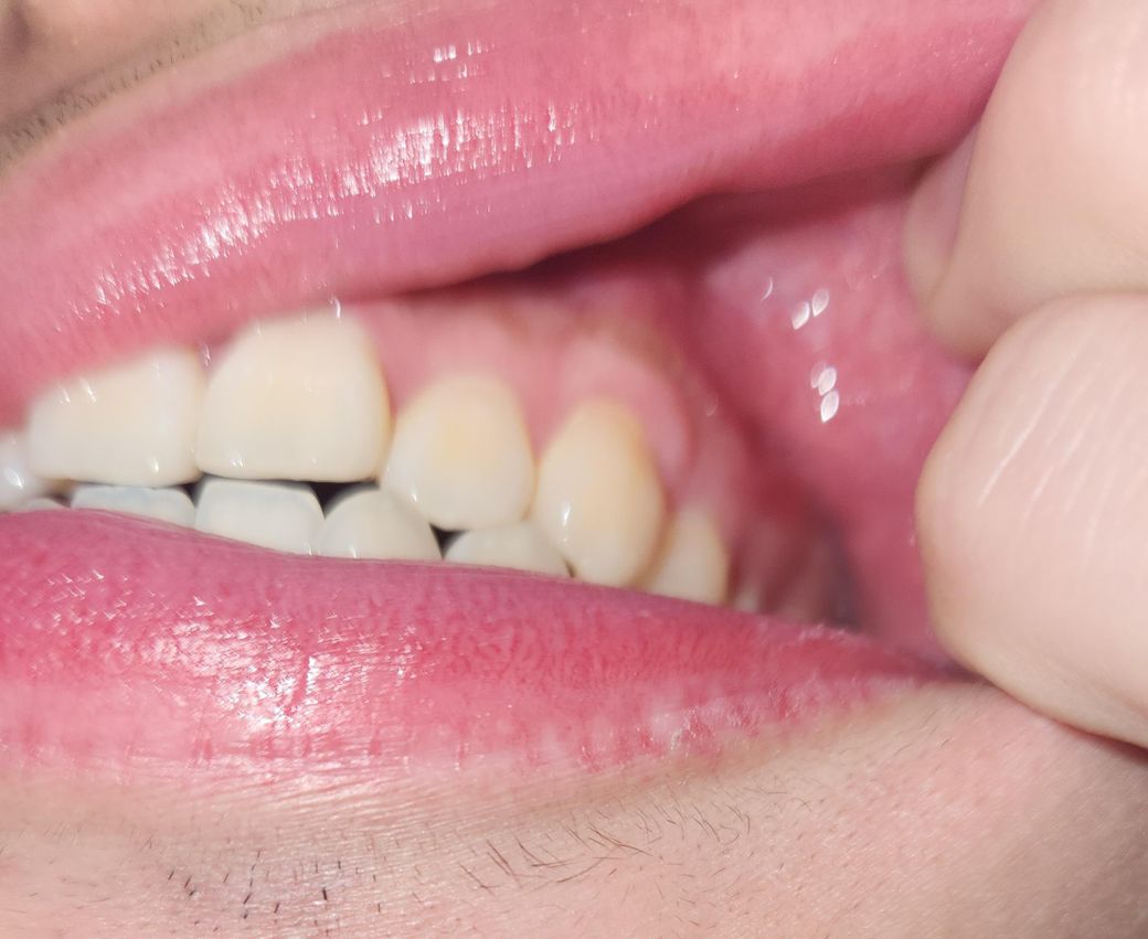 원래 송곳니 부위에 잇몸이 두껍게 있는 경우가 많으며 이는 더 좋은 것입니다. 정확하게 부착치은이라고 하며 이것은 많아야 잇몸을 건강하게 유지하고 치아를 보호합니다.