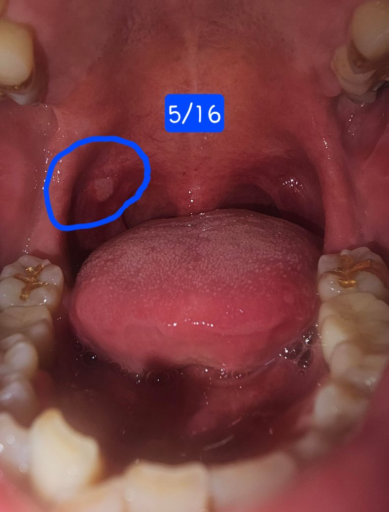 [구강악안면외과질문] 목구멍쪽에 혹같은게 있고 좁쌀같은 것들이 주변에 생겼습니다.