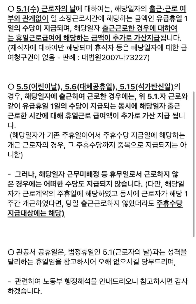 (-그러나 해당일자에 근무미배정등 휴무일로서 근로하지않은경우에는 어떠한 수당도 지급되지않습니다 )