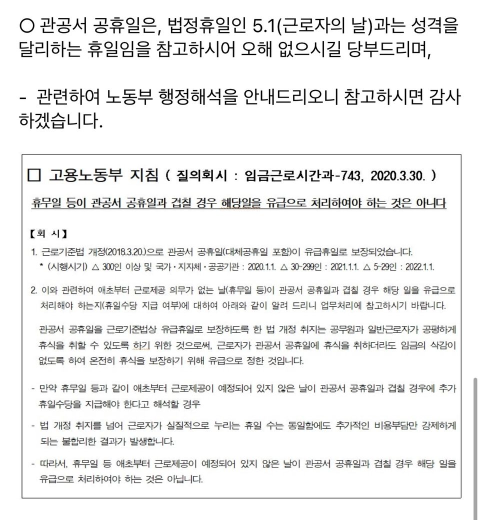 공휴일은 유급휴일로, 해당일에 쉬더라도 임금이 지급됩니다. '수당이 지급되지 않는다'는 것이 해당일의 임금도 지급하지 않는다는 뜻인지는 해석이 필요합니다.안녕하세요? 손인도 노무사입니다.
