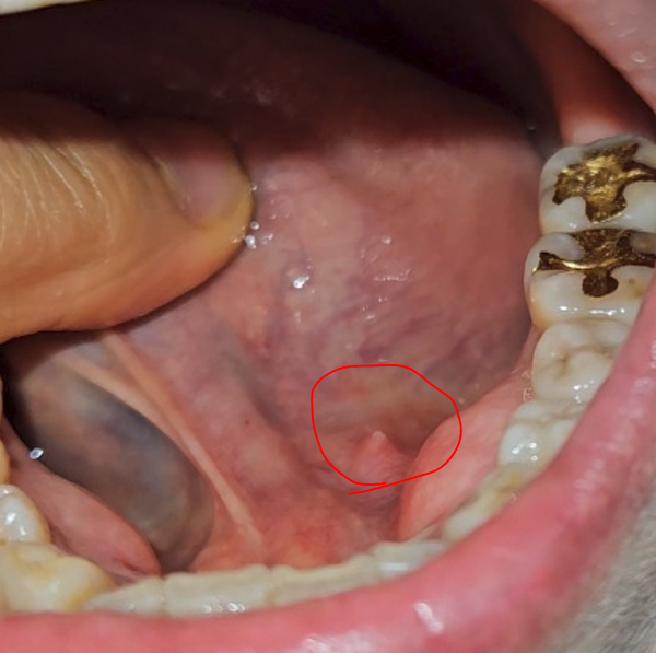 혀뿌리 옆 하얀색 돌기 같은 게 나서 통증이 있어요.