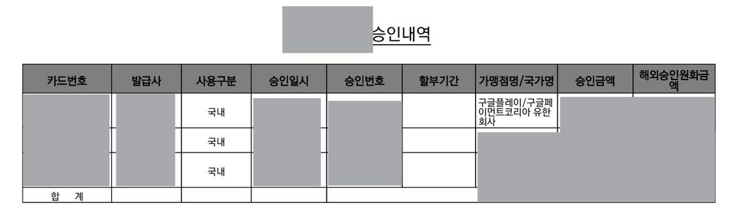 법인카드로 구글플레이 결제한 내역 회사 계좌로 입금할 때 영수증 필요한가요?