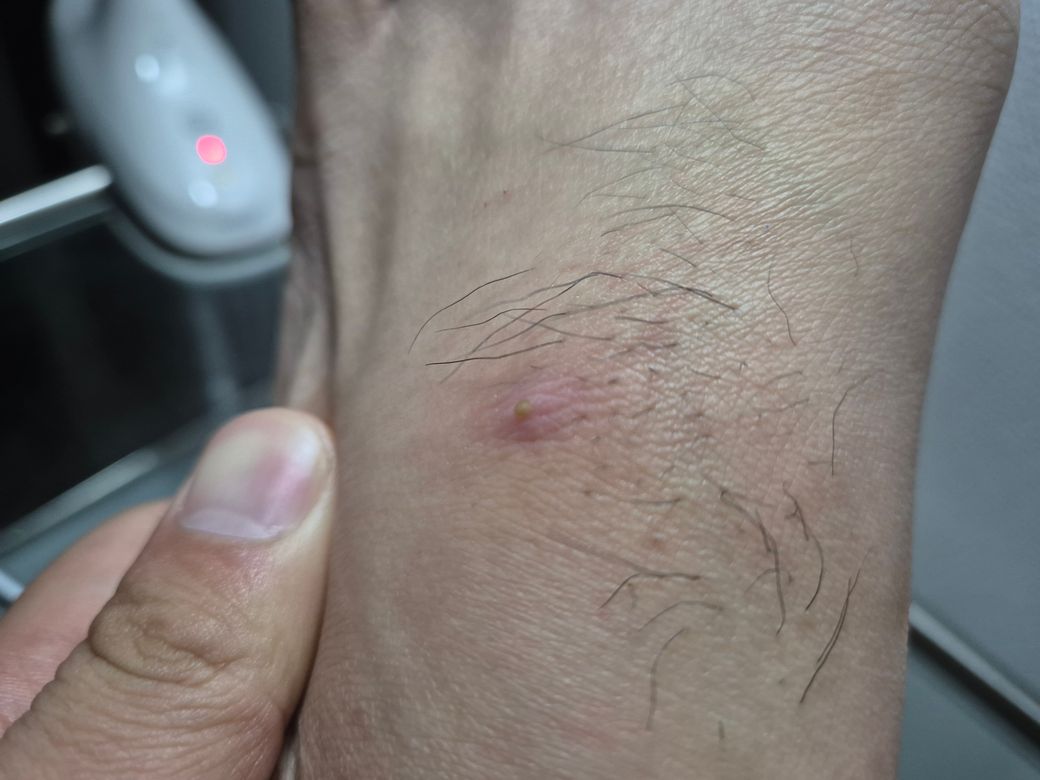 사진처럼 뾰루지가 났는데 색이 처음엔 여드름같았는데 점점 검게 변하는거 같습니다