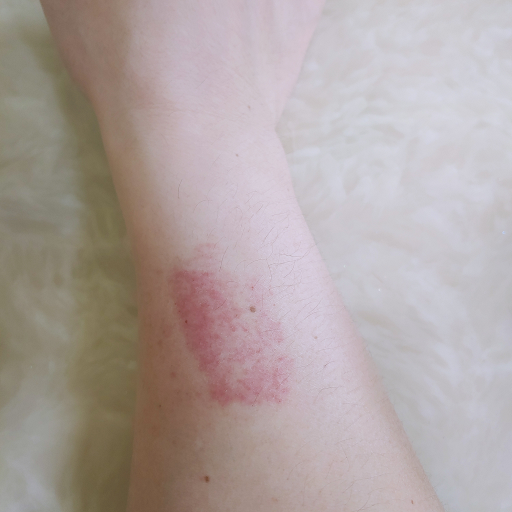 사진만으로 답변드리기 어려우나 알레르기 반응의 가능성이 생각됩니다. 내일까지 증상이 지속된다면 피부과 진료를 권합니다.