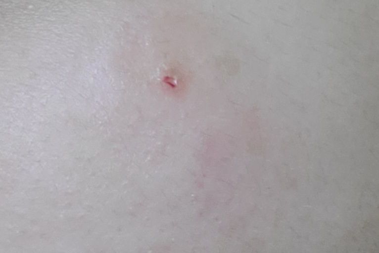 제거 부위는 주위 피부보다 아주 약간 볼록하게 올라와있습니다