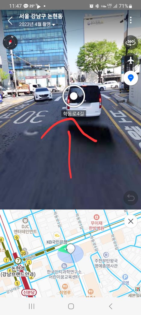 저는 접촉을 피하기 위해 킥보드를 우측으로 틀면서