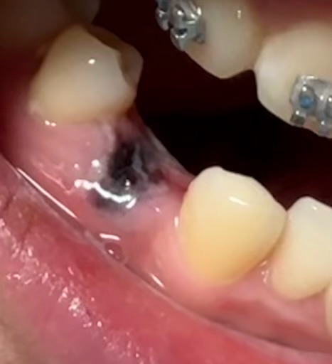 발치 한 부위에 보이는 것은 혈병으로 보입니다.