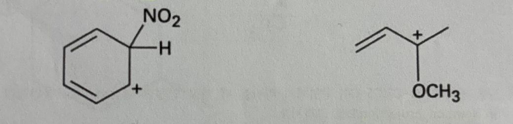 공명 구조1 : 양전하를 고리 주변으로 이동시켜 공명 구조를 그릴 수 있습니다. H⁺가 연결된 탄소 옆의 탄소 원자로 양전하를 이동시킵니다. 이는 벤젠 고리의 파이 전자를 이동시켜 이 변경을 수용합니다.