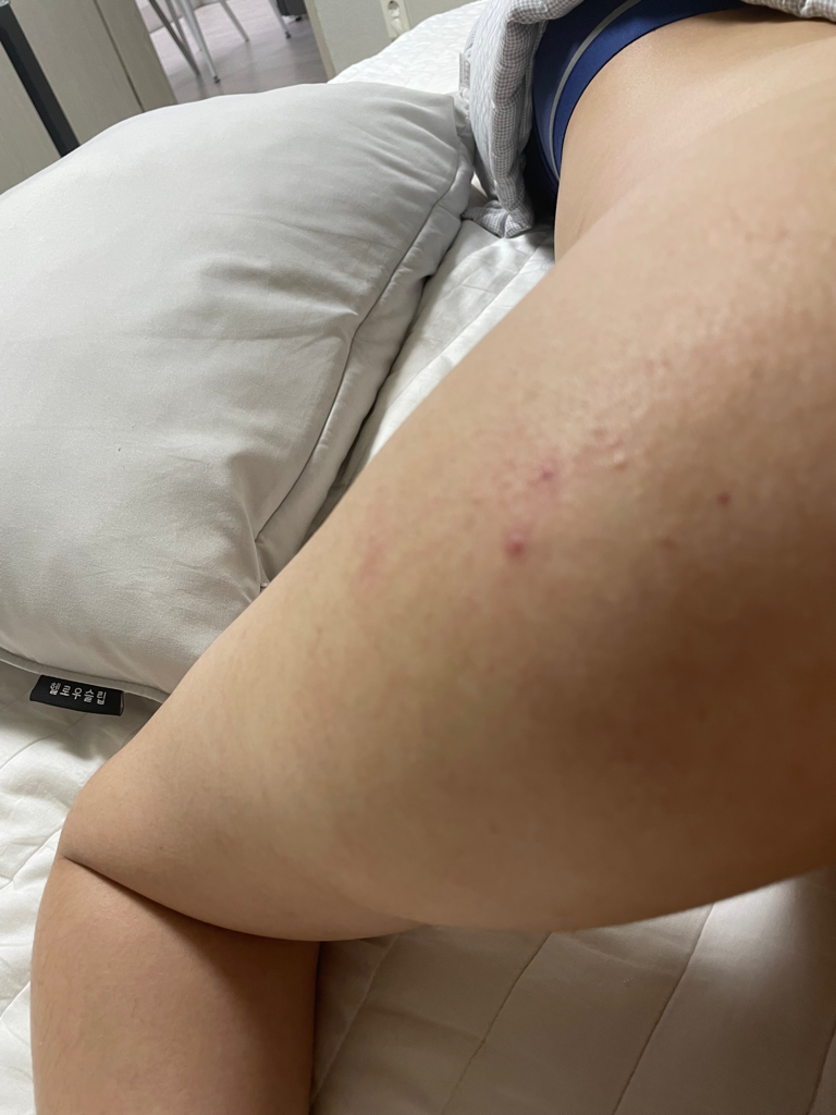 거칠게 보이는 병변은 습진성 병변을 추정케합니다. 가까운 피부과를 방문해 진료받아보시기를 권해드립니다.