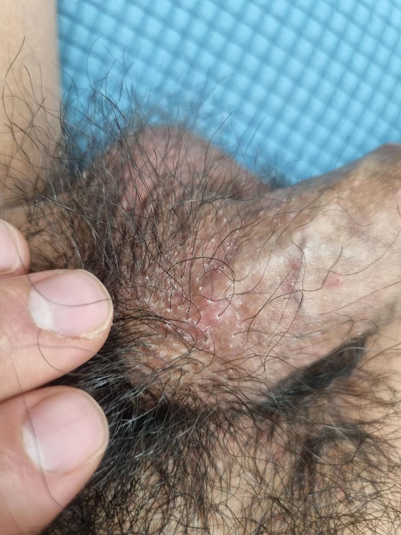 넷째, 지루성 피부염이나 건선 초기 병변도 드물게 성기 주변에 나타날 수 있으며, 각질이 특징적입니다.