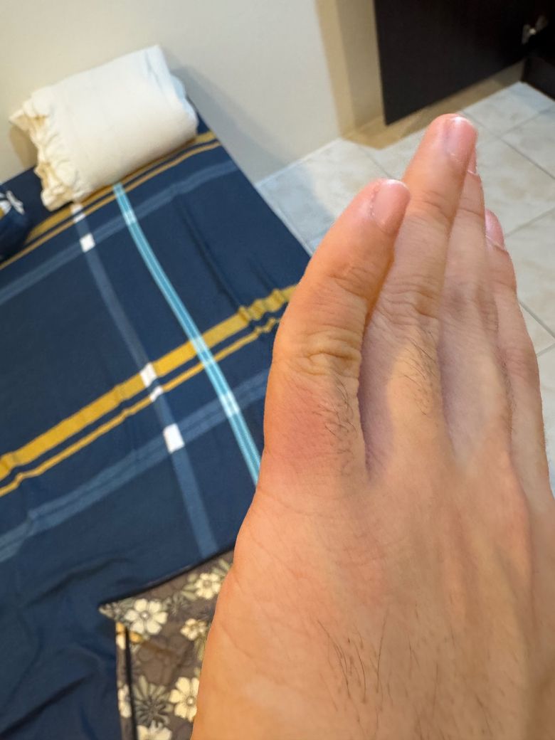 약 5일전 웨이트 운동후 새끼손가락이 조금 뻐근했는데 2일뒤에 보니 아래와 같이 멍이들고 부었습니다