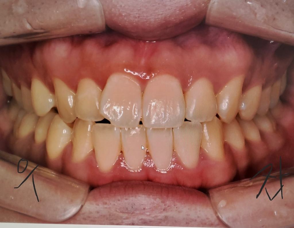 어쨌든 잇몸에 관해서만 보면, 현재 사진에서는 잇몸 높이는 그렇게 많이 낮진 않고, 잇몸이 조금 부어있는 상태이긴 합니다.