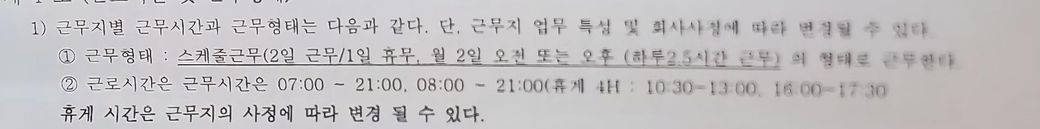 스케줄 근무라 한주에 적으면 38시간 많으면 48시간으로 계약이 되어있는데 실제 근무는 이거보다 적어서 휴일에 반일근무를 월 2회 하라고 하는데 문제되는게 없나요?