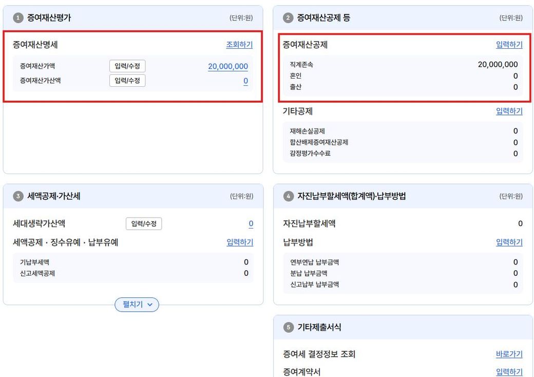 증여를 조부모님, 부모님 둘 다 받아서 신고하려는데요