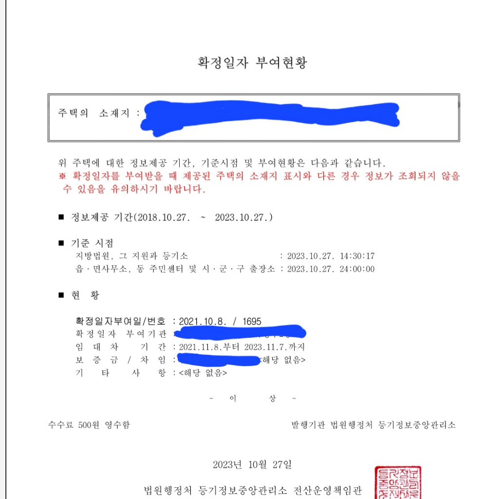 이것이 아니라면 확정일자 시점이 차이나는 것에 대해서는 등기소에 문의해 보시기 바랍니다.