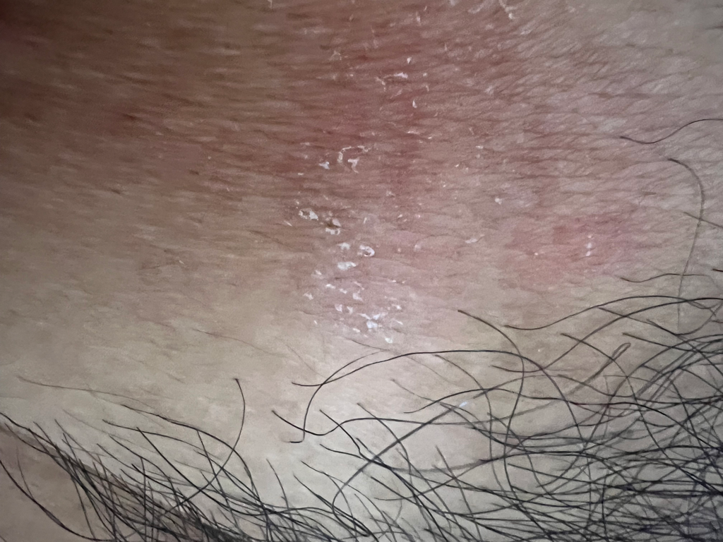 성기 위이고 예전에 가려웟는데 비뇨기과 의사분이 피부연고 처방 해준 부위인데 동그랗게 껍질이 벗겨졌네요