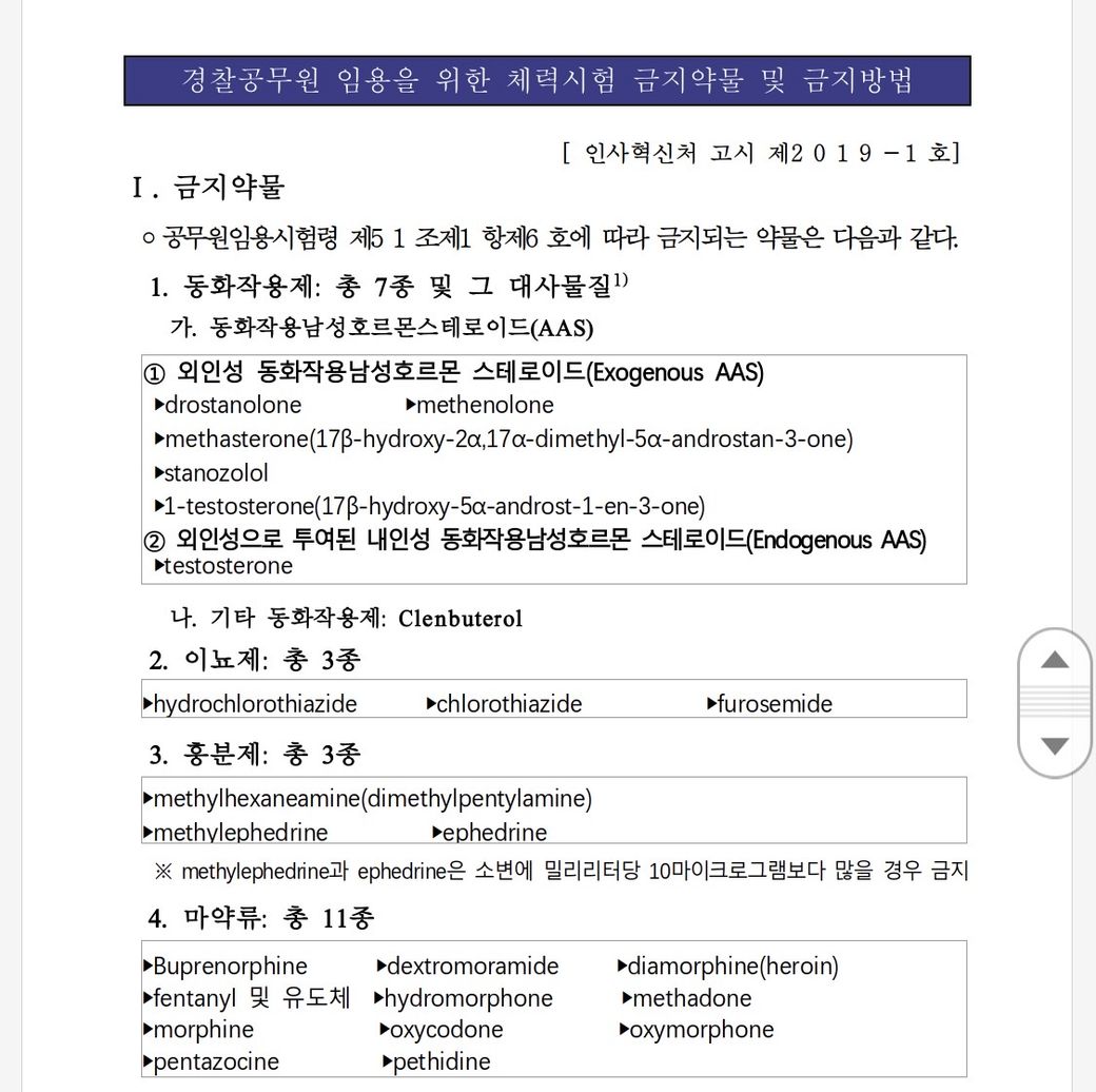 경찰 체력 금지약물에 해당하는지 궁금합니다