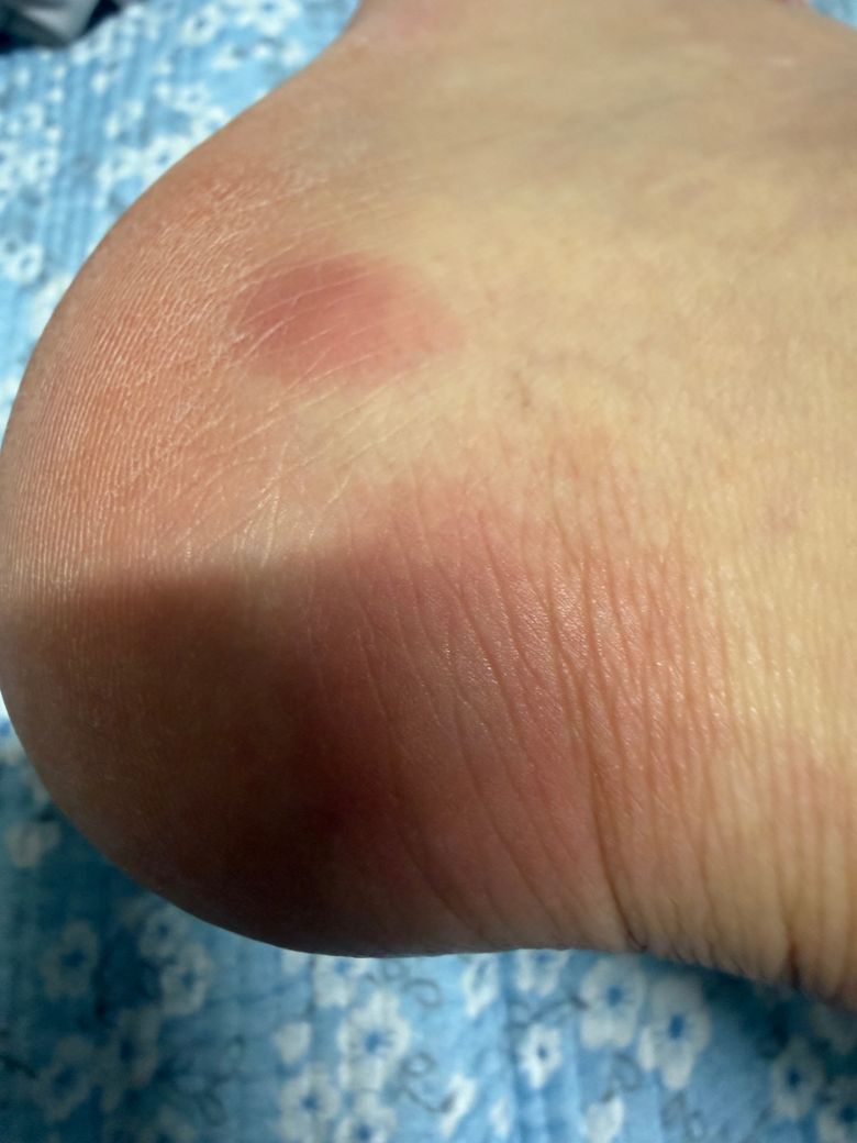 갑자기 양 발 뒤꿈치에 두 어개정도 빨간색으로 올라왔어요. 만져보면 딱딱하고 너무 간지럽고 아프네요. 발가락에 동상이 생겼는데 이것과 연관이 있을까요?