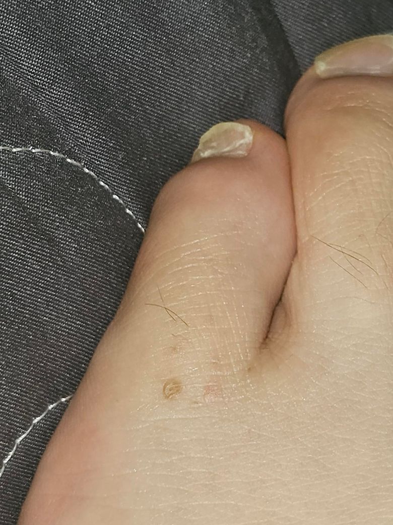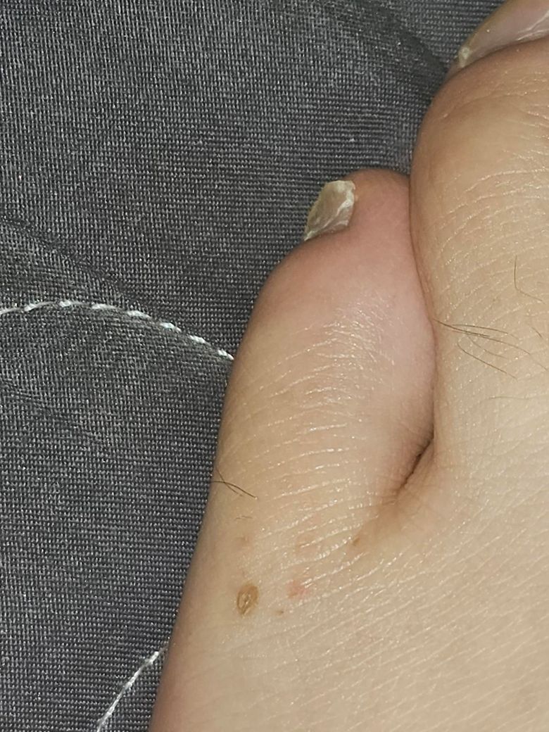 물집 잡혔던 자리에 어느날 보니 검버섯 처럼 동그란게 생겼습니다