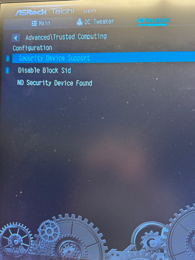 intel계열이라면, Platform Trust Technology” 활성화, AMD 메인보드에서는 BIOS-Advanced-CPU Configuration에서 AMD fTPM switch 를 켜면 됩니다.