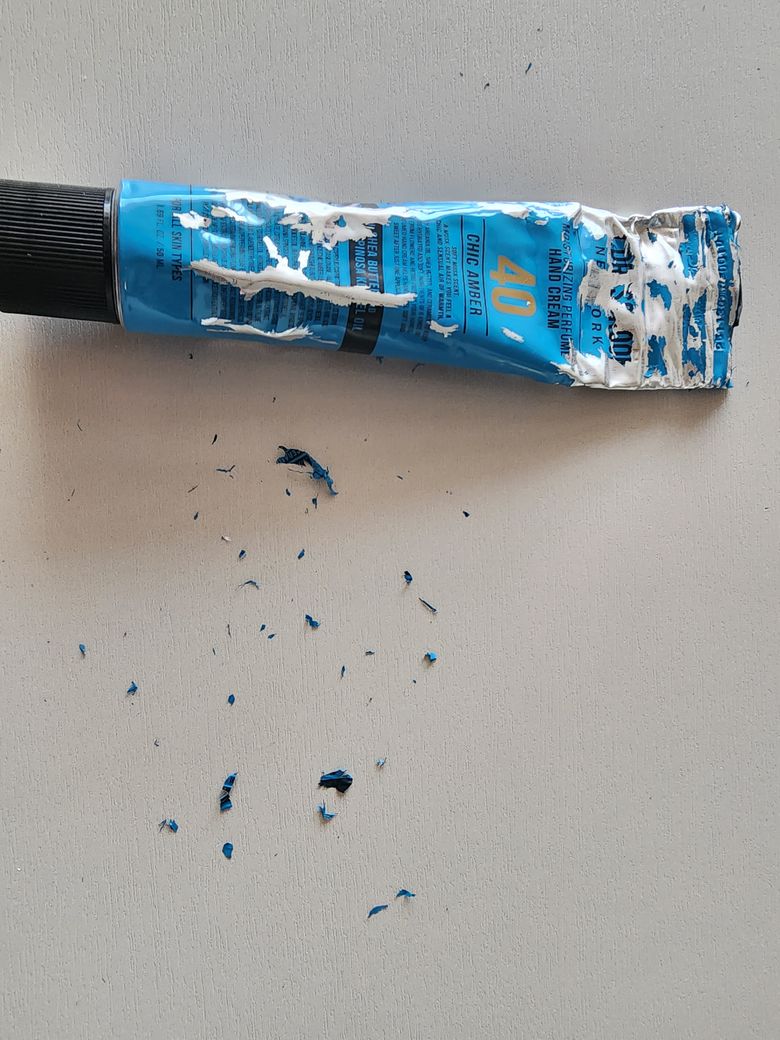 알루미늄 튜브형 핸드크림 사용하고 있는데 도색 부분이 벗겨져요.ㅠㅠ