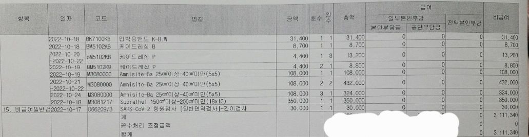 나머지는 상처치료에 필요한 약비와 항원검사비인데