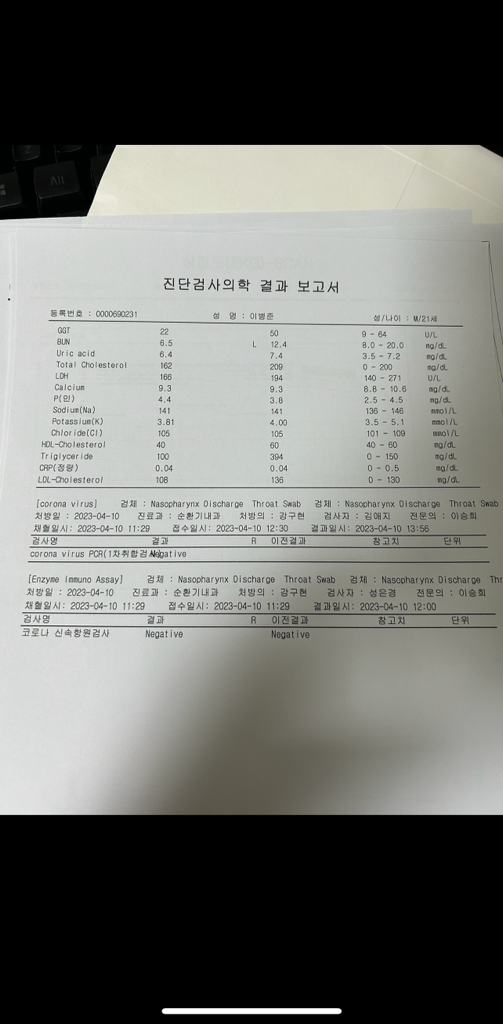 검사 결과를 쭉 훓어 봤는데 현재 상태는 몸에 큰 이상 소견은 없어 보입니다.