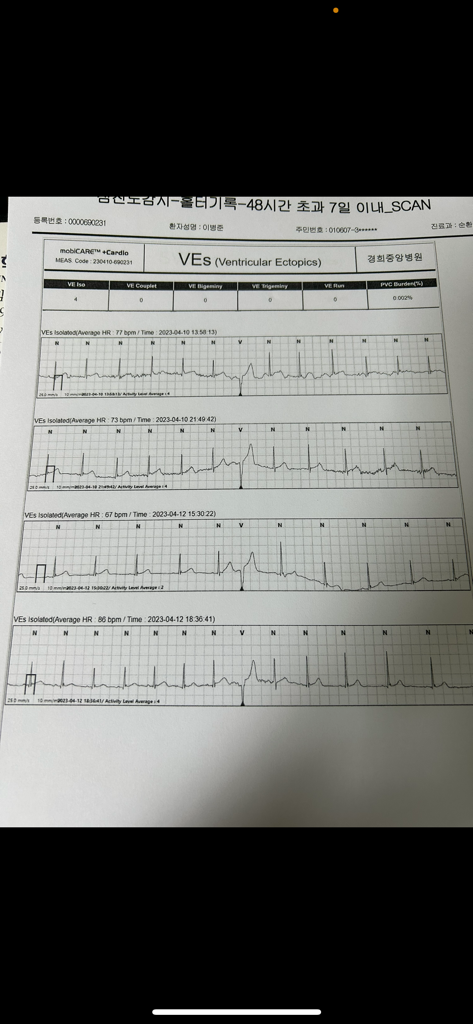 4월초에 흉부CT,72시간홀터,심전도,엑스레이,피검사 정상소견