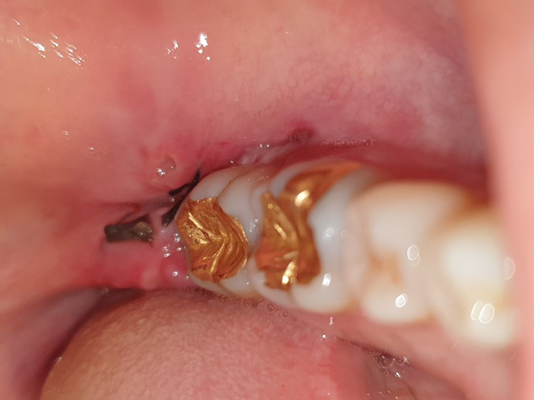 1. 여전히 아파서 붓기가 좀 빠져서 거울을 들여다보니 사랑니 뽑은 곳 옆 볼은 구멍이 난거같은데 염증일까요?