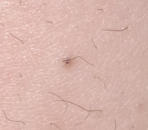 다리털 옆에 이상한 검은색깔 볼록한게 나왔는데 뭔지 아시나요? 크게 모기 모양처럼 볼록하게 나온게 아니라 약간 살짝 볼록하게 나왔어요. 혹시 표피낭종인가요?