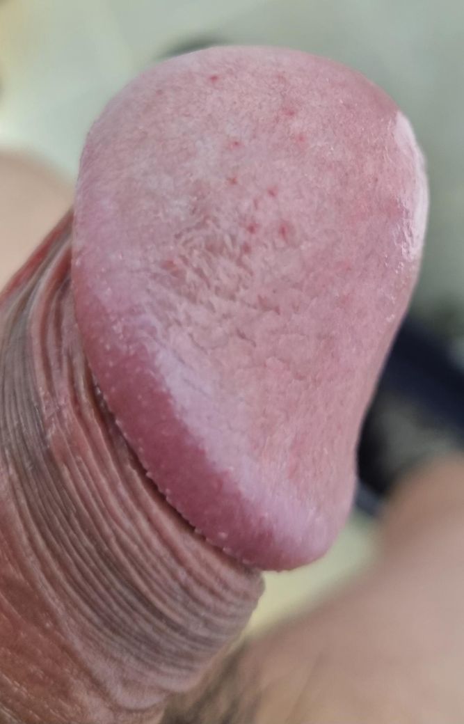 사진상으로는 귀두 표면에 작은 점상 홍반들이 산재해 있고, 요도구 주변에 규칙적인 돌기 형태가 보입니다. 경과상 성관계 이후 가려움이 동반된 점을 고려하면 세균성 감염보다는 마찰에 의한 자극성 귀두염이나 초기 칸디다성 귀두염 가능성이 더 높습니다. 항생제는 세균 감염에서 사용하는 약이므로 현재 양상에서는 우선적으로 필요해 보이지 않습니다.