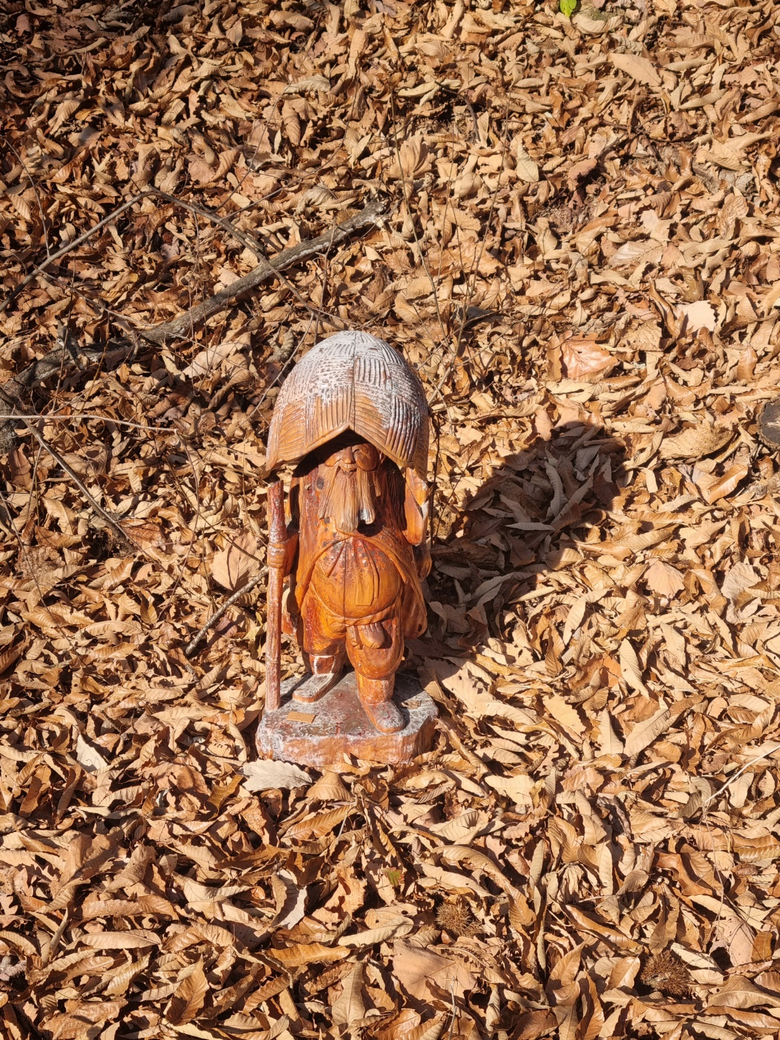 야산을 등산하다보니, 1m 크기의 삿갓을 쓴 사람의 동상이 보이네요. 그런데 무슨 뜻을 표시하는지요? 길을 안내하는 것인지요?